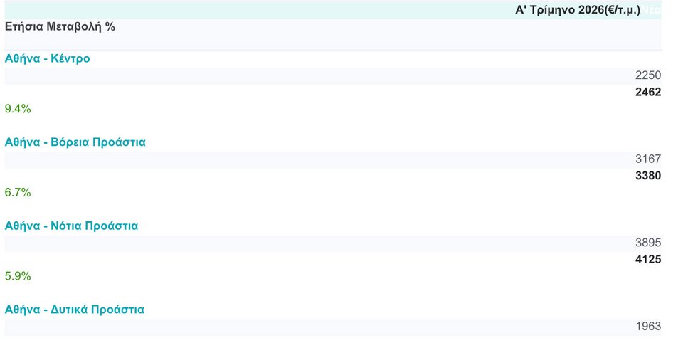 Με 4,20% «έτρεξαν» οι τιμές των ακινήτων στο πρώτο τρίμηνο του 2026, διαψεύδοντας για μια ακόμα φορά όσους εκτιμούσαν ότι πιάσαμε το «ταβάνι».