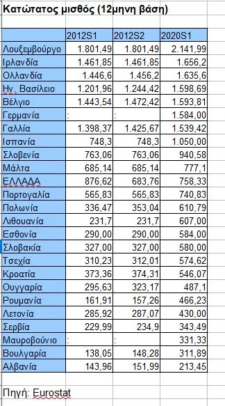 Ούτε... βαλτή να ήταν η Eurostat, η οποία δημοσιοποίησε συγκριτικό πίνακα μεταξύ των κρατών της Ευρώπης, λίγο πριν σηκωθεί η αυλαία των διαβουλεύσεων για τον κατώτατο μισθό.