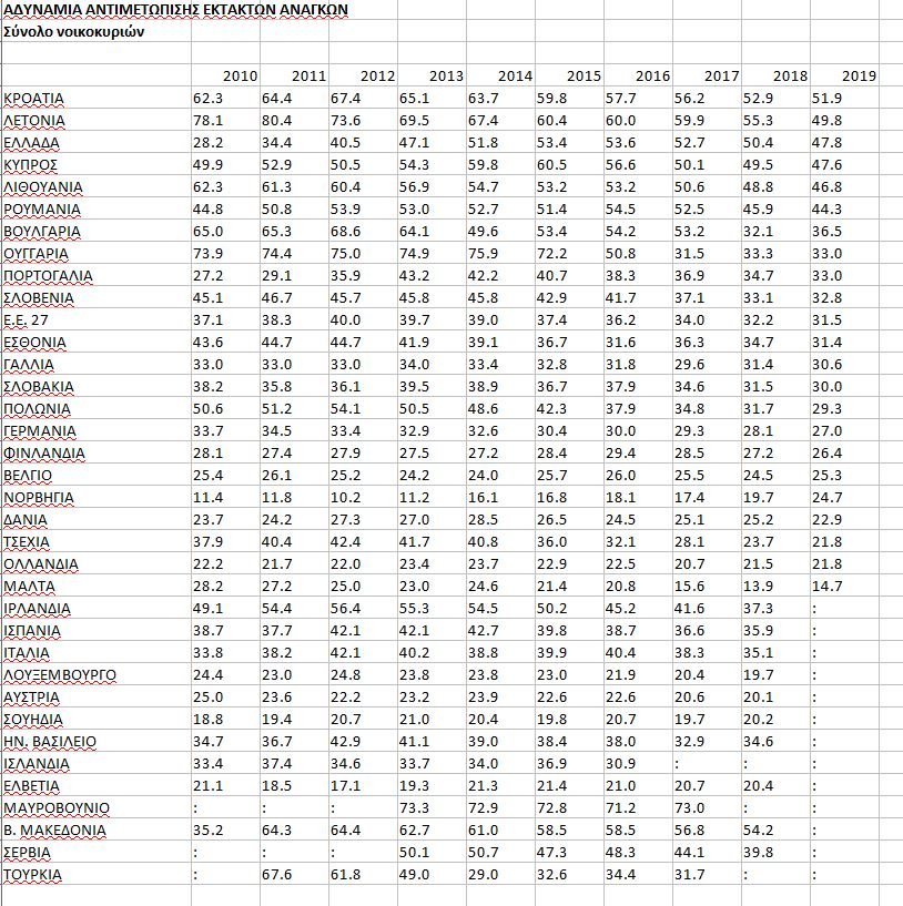 Εκεί που οι κοινωνικοί δείκτες «κοκκινίζουν» είναι στις μονογονεϊκές οικογένειες. Στο σύνολο της Ευρώπης το ποσοστό αυτών των νοικοκυριών που αδυνατούν να καλύψουν έκτακτες δαπάνες, διαμορφώνεται στο 56%, ενώ στην Ελλάδα ανέρχεται στο 67,8% και μάλιστα καταγράφοντας αύξηση 4,4 ποσοστιαίων μονάδων σε σχέση με το 2018!!!