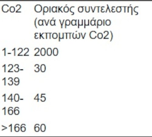Νέα κλίμακα βάσει Co2 (για οχήματα που έχουν ταξινομηθεί από 1/11/2010)