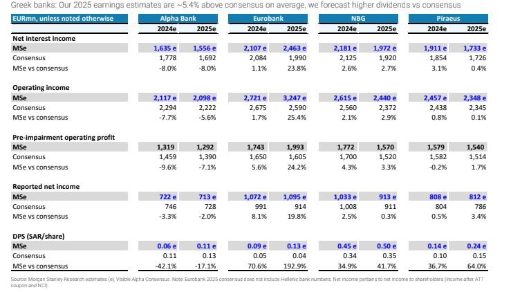 Τα κέρδη των ελληνικών τραπεζών αναμένεται να ξεπεράσουν τα 7 δισ. ευρώ το 2024 , σημειώνουν οι αναλυτές της Morgan Stanley.