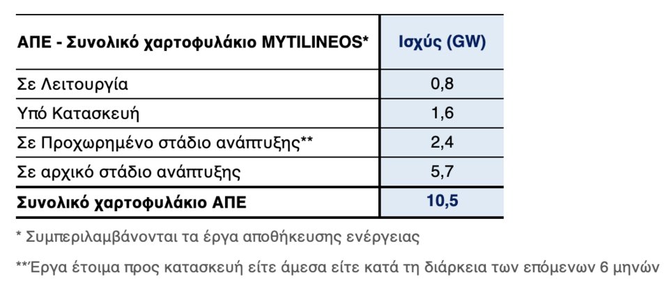 Αναφορικά με το χαρτοφυλάκιο της MYTILINEOS που αναπτύσσεται εντός Ελλάδος, συνεχίζονται κανονικά οι εργασίες για την ολοκλήρωση της κατασκευής του πρώτου σκέλους (~300MW) των ~1,5GW φωτοβολταϊκών πάρκων, αξιοποιώντας πόρους από το Μηχανισμό Ανάκαμψης και Σταθερότητας (RRF), τα οποία ξεκινήσαν να εισέρχονται σταδιακά σε λειτουργία. Παράλληλα, εντός του 2024 ξεκίνησε η κατασκευή του δεύτερου σκέλους του ελληνικού χαρτοφυλακίου, δυναμικότητας ~700 MW. Όσον αφορά στο διεθνές χαρτοφυλάκιο, η MYTILINEOS, σήμερα, κατασκευάζει πάνω από 1,3GW φωτοβολταϊκά έργα εκτός Ελλάδος, τα οποία αναμένεται να τεθούν σε λειτουργία το επόμενο διάστημα.