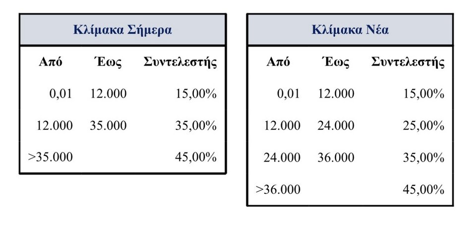 Για να εξομαλυνθεί το χάσμα μεταξύ των φορολογικών κλιμακίων, που προκαλεί στρεβλώσεις και αδικίες, εισάγεται ένα νέο φορολογικό κλιμάκιο, το οποίο προσφέρει δικαιότερη φορολόγηση για τους ιδιοκτήτες μεσαίας κατηγορίας. Έτσι η νέα κλίμακα διαμορφώνεται ως εξής: