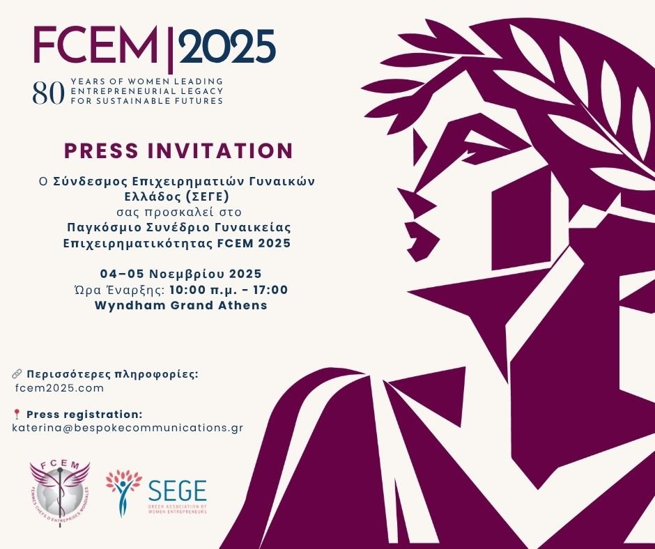 Με τη φιλοξενία του FCEM World Congress 2025, ο ΣΕΓΕ αναδεικνύει την Ελλάδα ως κόμβο καινοτομίας, εξωστρέφειας και ηγεσίας, ενισχύοντας τη φωνή των Ελληνίδων επιχειρηματιών στο παγκόσμιο προσκήνιο και ενδυναμώνοντας το διεθνές δίκτυο γυναικείας επιχειρηματικότητας.