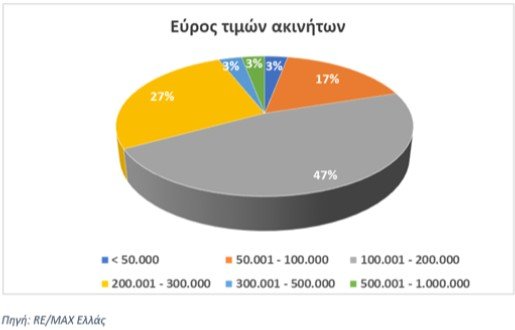 Αξίζει να τονιστεί, ότι το μεγαλύτερο μέρος των συναλλαγών όσον αφορά την αξία του ακινήτου, εντοπίζεται στην κατηγορία μεταξύ 100.001 ευρώ και 200.000 ευρώ (47%), ενώ η κατηγορία ακινήτων αξίας από 200.001 ευρώ έως 300.000 ευρώ επιλέχθηκε από το 27% του συνόλου των ξένων αγοραστών. Την ίδια στιγμή, το 17% των εν λόγω αγοραστών επέλεξαν ακίνητα αξίας από 50.001 ευρώ έως 100.000 ευρώ, ενώ πολύ πιο περιορισμένες είναι οι αγορές για ακίνητα αξίας έως 50.000 ευρώ και για ακίνητα αξίας από 300.001 ευρώ έως 500.000 ευρώ και από 500.001 έως 1.000.000 (το ποσοστό για την κάθε κατηγορία ανέρχεται σε 3%).