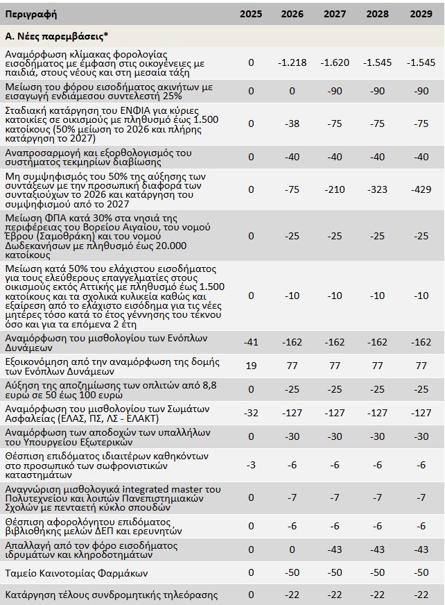 Κυριότερες μόνιμες δημοσιονομικές παρεμβάσεις 2025-2029