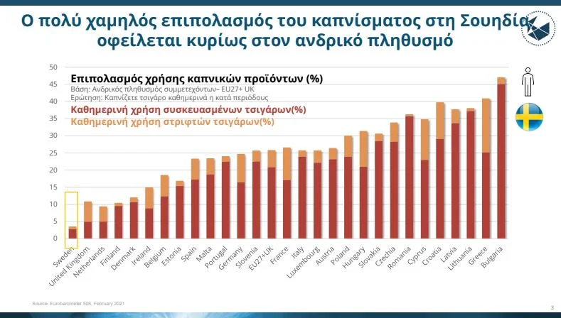 Στο πλαίσιο της συζήτησης, παρουσιάστηκε και το παράδειγμα της Ελλάδας, όπου η επιλογή ενός σύγχρονου αλλά, παράλληλα, αυστηρού ρυθμιστικού πλαισίου που δεν απαγορεύει την κυκλοφορία των εναλλακτικών προϊόντων και ταυτόχρονα εξασφαλίζει τη δυνατότητα για έγκυρη ενημέρωση των καπνιστών, φαίνεται πως έχει επιφέρει, ορατά και μετρήσιμα αποτελέσματα για τη μείωση του καπνίσματος στην Ελλάδα.  Είναι χαρακτηριστικό ότι σύμφωνα με τα στοιχεία του Ευρωβαρόμετρου, η Ελλάδα έχει πετύχει μείωση του καπνίσματος κατά 6 ποσοστιαίες μονάδες την περίοδο 2021–2023, από 42% σε 36%. Πρόκειται για τη δεύτερη καλύτερη επίδοση στην Ε.Ε.-27, μετά την Τσεχία, η οποία εφαρμόζει παρόμοια πολιτική.