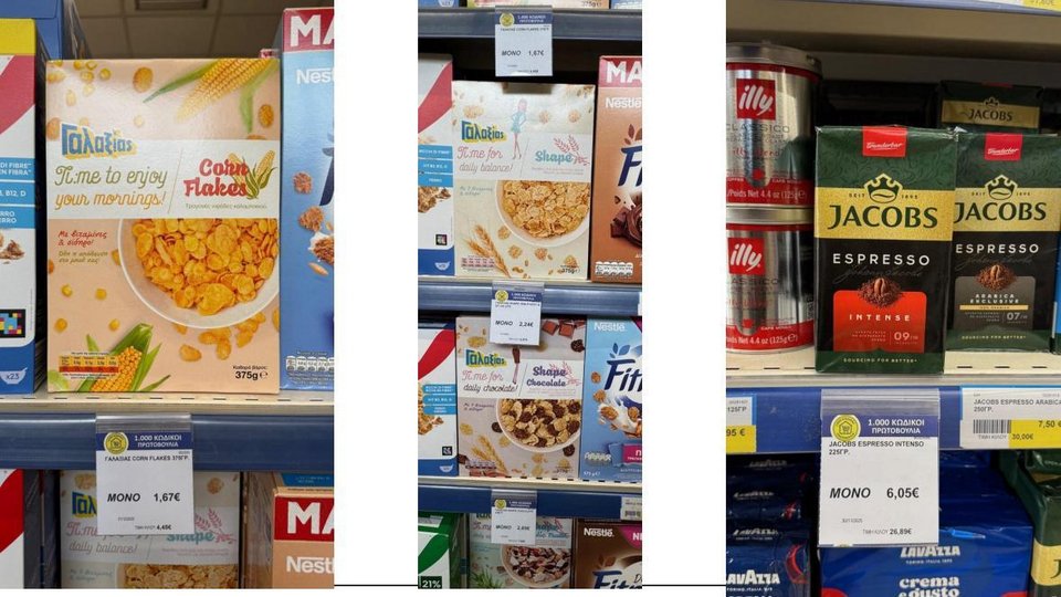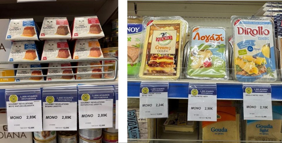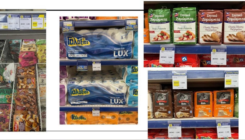 Εικόνες με τα νέα ταμπελάκια στα σούπερ μάρκετ για τις μειώσεις τιμών σε πάνω από 2.100 κωδικούς προϊόντων