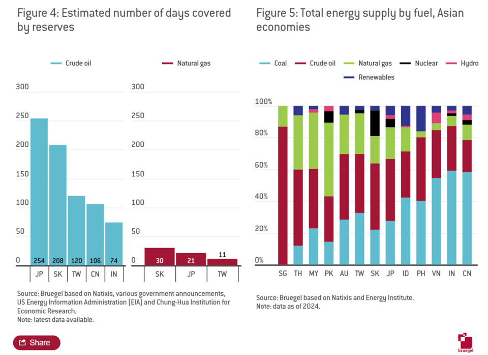 Στον αντίποδα, βρίσκεται ο “δράκος” της Α. Ανατολής. Σύμφωνα με την ανάλυση του Bruegel, η διαταραχή των παγκόσμιων ενεργειακών ροών που προκλήθηκε από τις επιθέσεις των Ηνωμένων Πολιτειών και του Ισραήλ κατά του Ιράν αποτελεί σοβαρή δοκιμασία για την ενεργειακή ασφάλεια, την ανθεκτικότητα των εξαγωγών και τη γεωπολιτική στρατηγική της Κίνας, του μεγαλύτερου εισαγωγέα πετρελαίου στον κόσμο. Ενώ τα τεράστια αποθέματα πετρελαίου του Πεκίνου και η διαφοροποιημένη προμήθεια προσφέρουν βραχυπρόθεσμη προστασία, μια παρατεταμένη σύγκρουση για το Ιράν θα μπορούσε να επιδεινώσει τις εγχώριες οικονομικές πιέσεις και να υπονομεύσει τους παγκόσμιους στόχους της Κίνας.