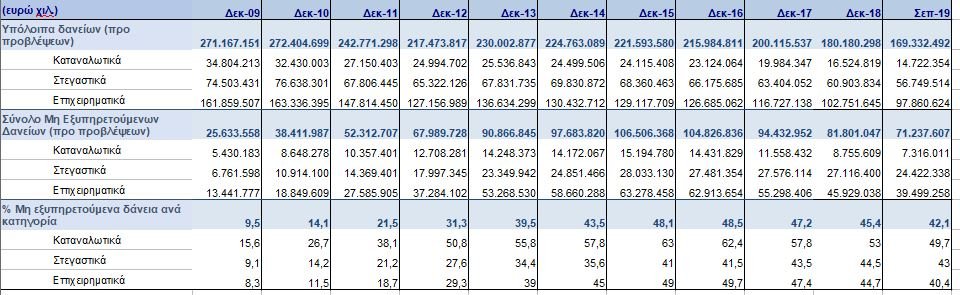 Μετά από μόλις δύο χρόνια κρίσης κι ενώ είχαν διαψευστεί οι υποσχέσεις και οι προσδοκίες για γοργή επιστροφή στην κανονικότητα, τα «κόκκινα» δάνεια είχαν διπλασιαστεί, ξεπερνώντας τα 52 δις ευρώ, ενώ στην κορύφωση της κρίσης, το 2013, είχαν ήδη φτάσει μια ανάσα από τα 91 δις ευρώ, αποτυπώνοντας την κατάρρευση νοικοκυριών κι επιχειρήσεων.