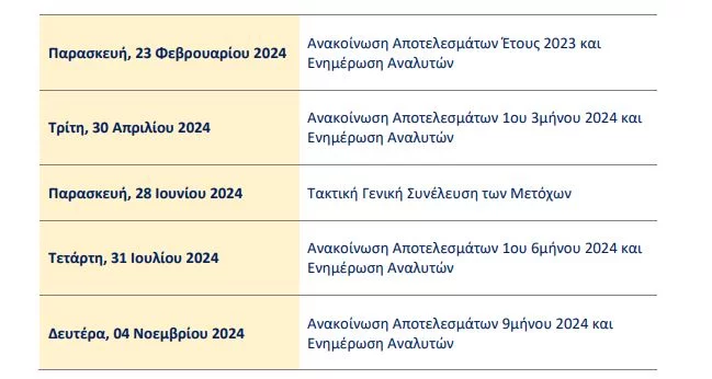 Το γεγονός που ξεχωρίζει είναι η ανακοίνωση των ετήσιων αποτελεσμάτων του 2023 στις 23 Φεβρουαρίου.