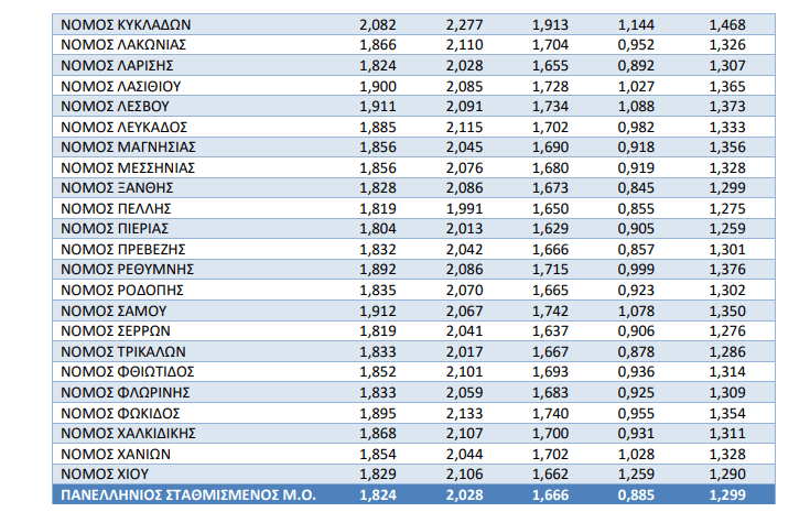 Στους περισσότερους νομούς οι τιμές της απλής αμόλυβδης βρίσκονται κάτω από τα 1,90 ευρώ, ενώ υπάρχουν και δύο νομοί που οι τιμές ξεπερνούν τα 2 ευρώ. Πρόκειται για τους νομούς Δωδεκανήσου και Κυκλάδων.