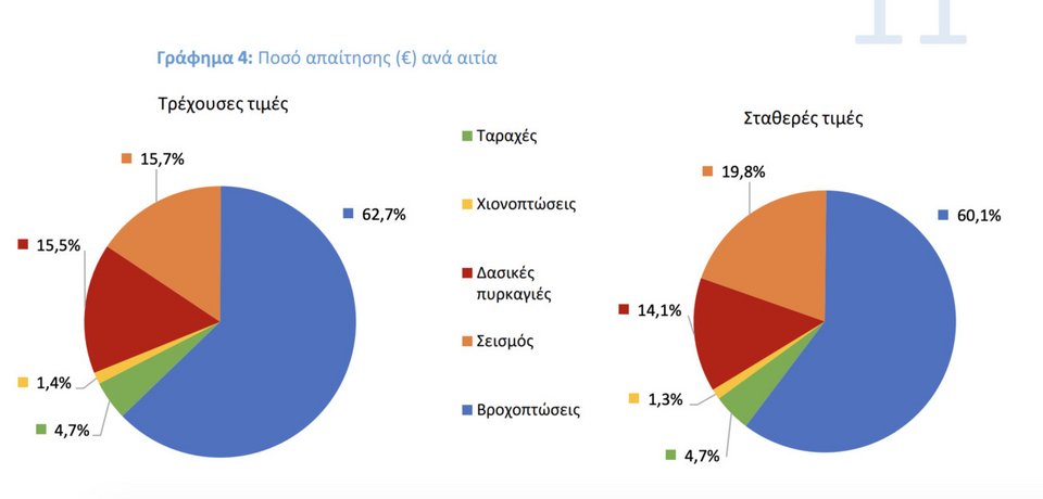 Με άλλα λόγια, ενώ ο συνολικός λογαριασμός των καταστροφών ξεπερνά το 1 δισ. ευρώ σε τρεις δεκαετίες, ένα σημαντικό μέρος του δεν περνά ποτέ από το σύστημα ασφάλισης, αλλά απορροφάται άτυπα από την κοινωνία και τα δημόσια ταμεία.