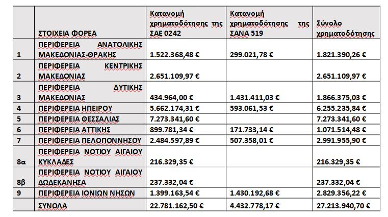 Aναλυτικά η κατανομή των χρημάτων στις περίφερειες
