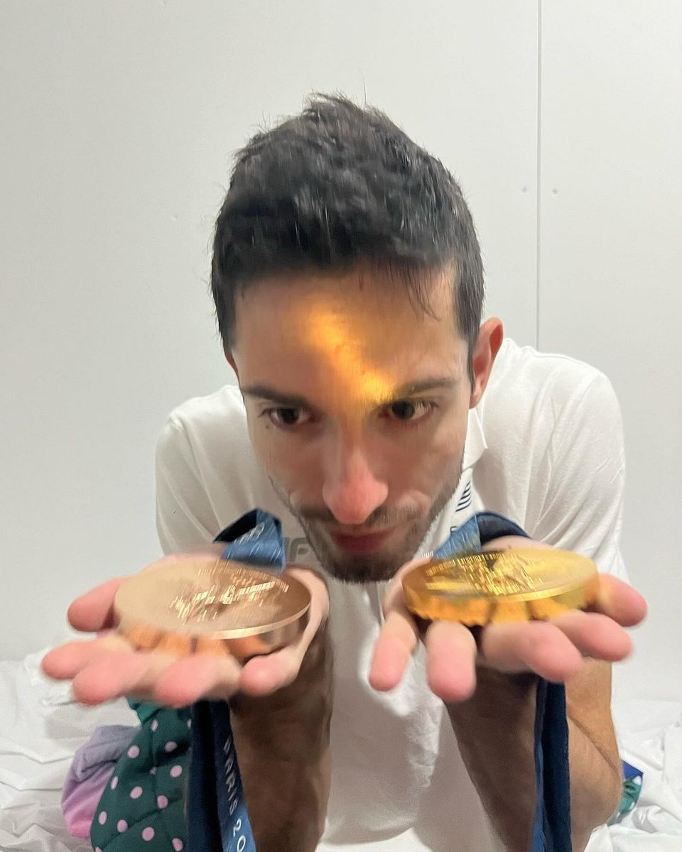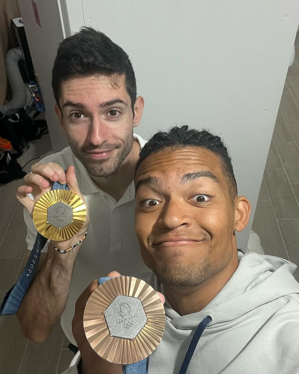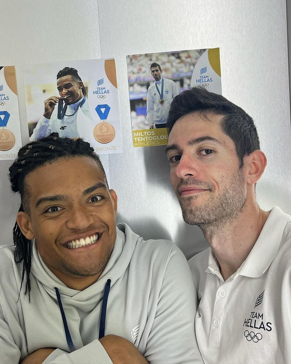 Αμέσως μετά την απονομή του χρυσού ολυμπιακού μεταλλίου, ο Μίλτος Τεντόγλου επέστρεψε χαρούμενος με τον φίλο του Εμμανουήλ Καραλή στο δωμάτιό τους και χωρίς άγχος οι δύο αθλητές φωτογραφήθηκαν με τα μετάλλιά τους.