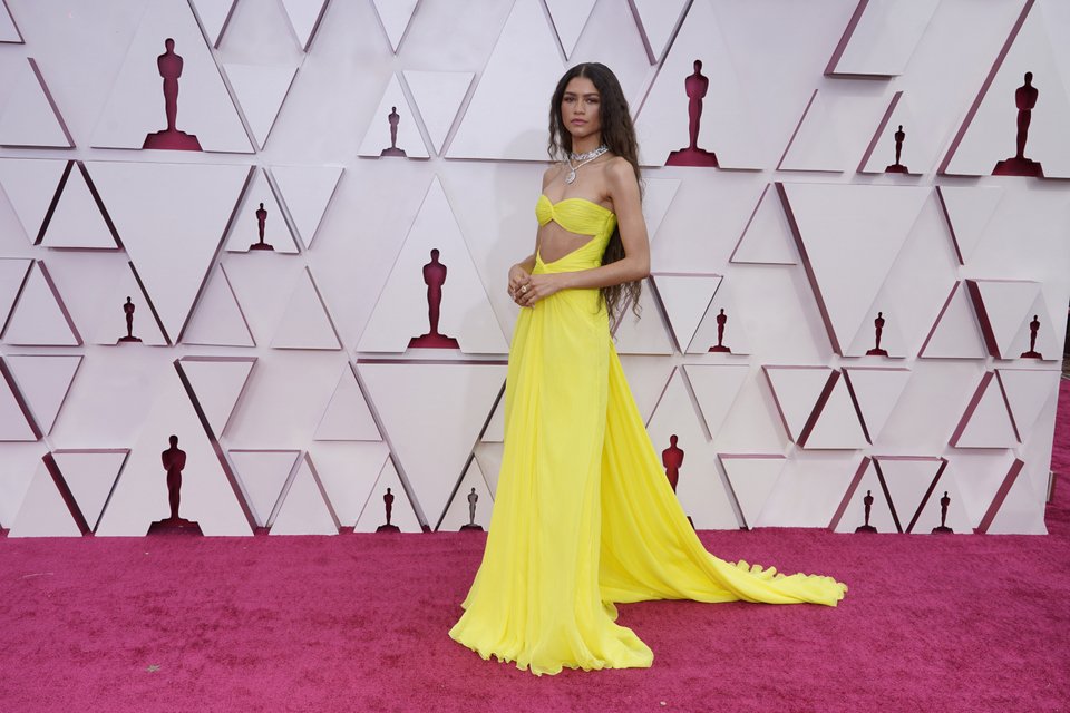 Η Ζεντάγια ήταν η απόλυτη θεά με ένα λαμπερό κίτρινο φόρεμα Valentino Couture. Με ένα ιδιαίτερο κόψιμο που τόνιζε το καλογυμνασμένο της κορμί αλλά και κοσμήματα Bvlgari αξίας άνω των 6 εκατομμυρίων δολαρίων, αναμφίβολα ξεχώριζε.