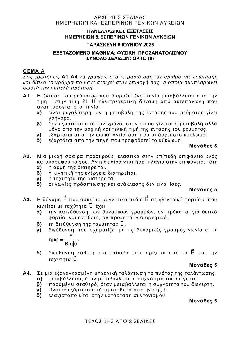 Δείτε τα θέματα της Φυσικήςστα οποία κλήθηκαν να απαντήσουν σήμερα οι υποψήφιοι των Πανελληνίων 2025 από τα ΓΕΛ:
