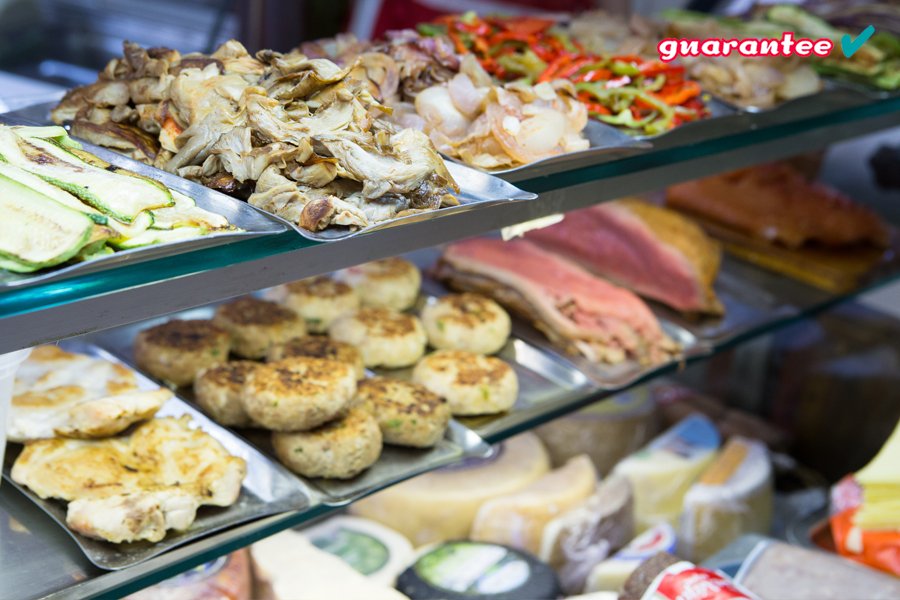Στις βιτρίνες του θα βρείτε ό,τι βάζει ο νους σας. Φυσικά, δεν μιλάμε για τα κλασικά, αλλά για μια μεγάλη ποικιλία τυριών, αλλαντικών και κρεατικών. Κατά περιόδους στις βιτρίνες του... Γκαραντί θα βρείτε από μπιφτεκάκια, ρόζμπιφ, αρνάκι ψητό, χειροποίητες σαρδέλες, φιλεταρισμένο σολομό, ακόμη και ροδάκινο το καλοκαίρι, ψημένο σε αλάτι και ζάχαρη! Και φυσικά άπαιχτες χειροποίητες σος (πέστο σχοινόπρασου, μουστάρδα με μούστο και μέλι, μαγιονέζα, vinaigrette μέχρι και μπεαρνέζ).