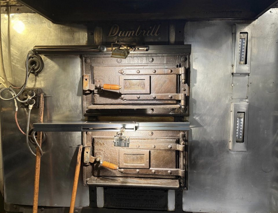 «Αυτός ο φούρνος είναι ακόμα εδώ», λέει και τον δείχνει με περηφάνια. «Έχει αλλάξει καύσιμα, αλλά είναι ο ίδιος. Πιστεύω ότι μεγάλο μέρος της γεύσης οφείλεται σε αυτόν».
