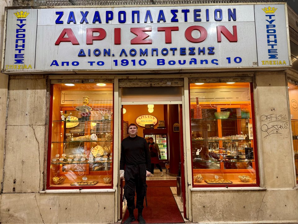 Είναι η τέταρτη γενιά που κρατά τα κλειδιά του ιστορικού τυροπιτάδικου. Κι όμως, μιλώντας μαζί του, καταλαβαίνεις πως το «Άριστον» δεν το αντιμετωπίζει ως επιχείρηση αλλά σαν οικογενειακή συνέχεια, σχεδόν σαν υποχρέωση μνήμης.