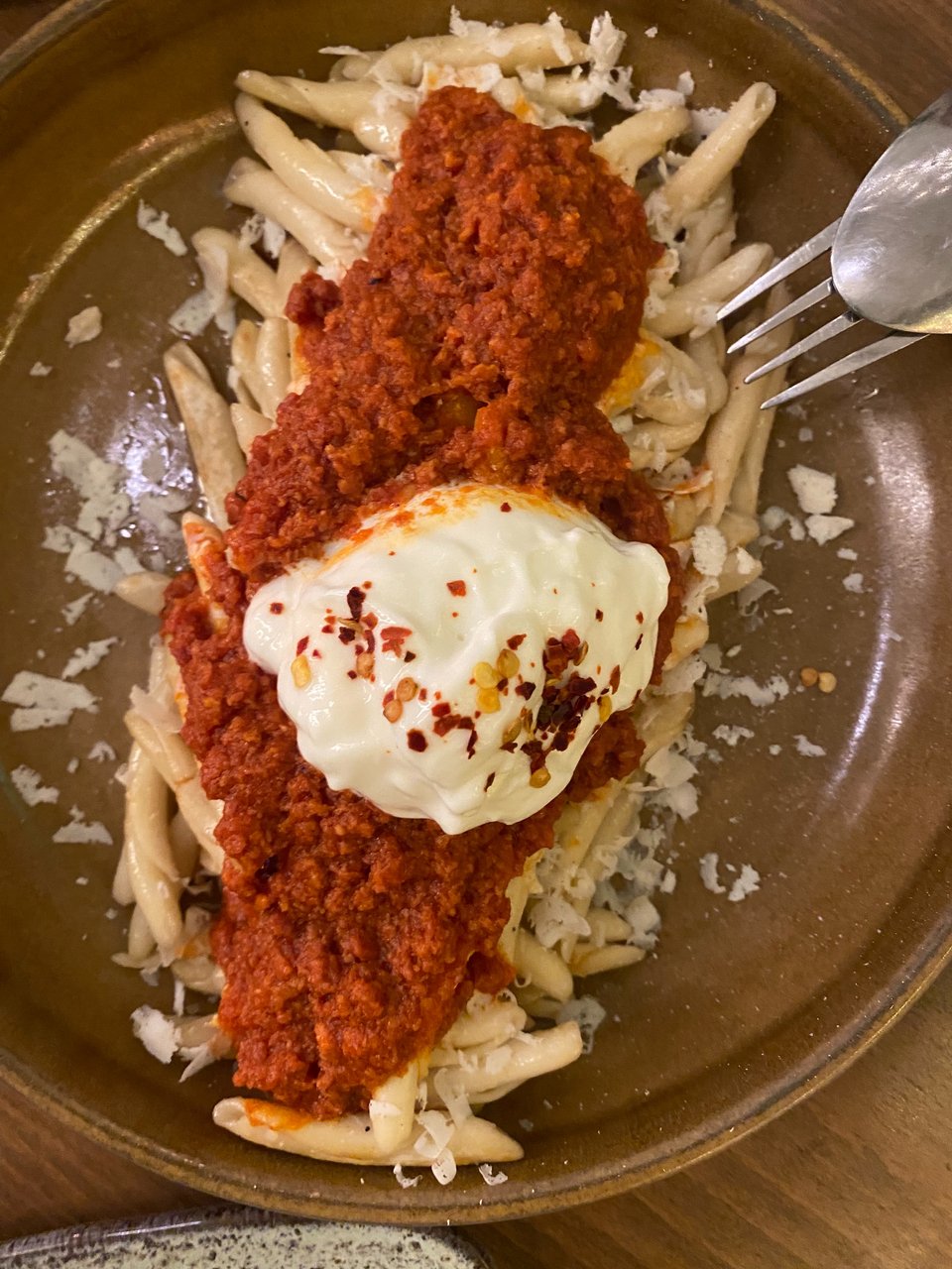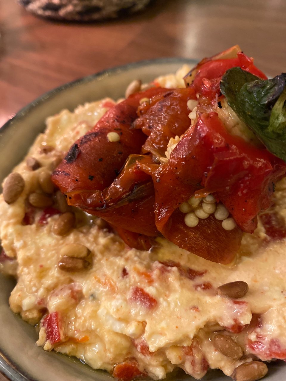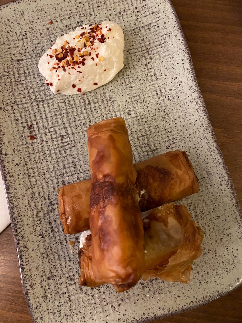 Το προζυμένιο ψημένο ψωμάκι έρχεται στο τραπέζι ζεστό και ακολουθεί μια μια παραδοσιακή τυροκαυτερή, όπου η οξύτητα της φέτας γλυκαίνει σοφά χάρη στην πιπεριά Φλωρίνης.