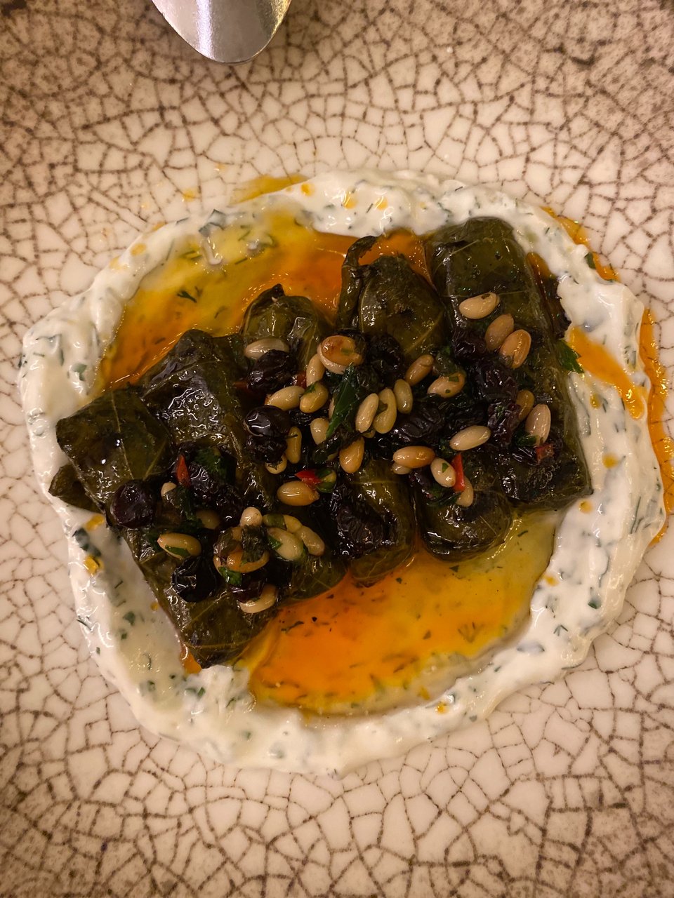 Τα ντολμαδάκια στη φωτιά, με πικάντικο γιαούρτι, κουκουνάρι και σταφίδα είναι μικρές μπουκιές με πλούσια γεύση που σου ανοίγουν την όρεξη και προετοιμάζουν για τα πληθωρικά πιτάκια γεμισμένα με σπετζοφάι και τσαλαφούτι από το Καρπενήσι.