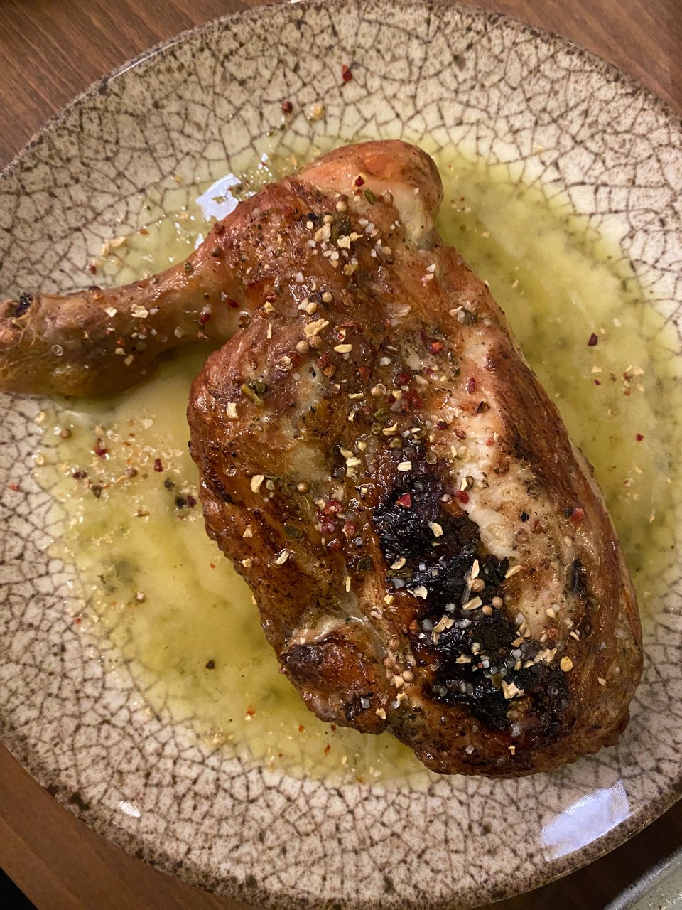 Δεν είναι ένα μαμαδίστικο κοτόπουλο, είναι πολύ καλύτερο, καθώς ο Μερζένης, έμπειρος στην καρνιβορική κουζίνα, με θητεία σε premium steak houses όπως το Drakoulis και το La Meat Maison, παίζει το κρέας στα δάχτυλα.