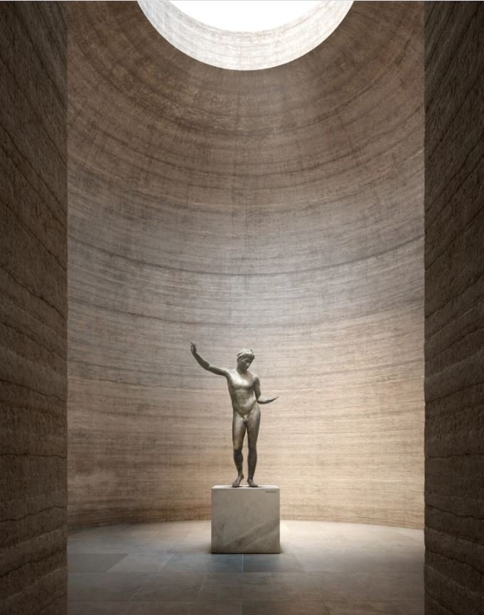 Δεν ξέρουμε αν η μουσειολογική μελέτη θα προβλέπει όντως ότι εκεί θα τοποθετηθεί ο Εφηβος των Αντικυθήρων, όμως αυτή η σύνδεση των έργων Τέχνης με τον χώρο και το φως παραμένει ακαταμάχητος. Σε μεγαλύτερη κλιμακα, αλλά με τις προδιαγραφές ενός κύλινδρου το συναντάμε για παράδειγμα στον χώρο που διαμόρφωσε ο Τadao Ando μέσα στο Bourse De Commerce, το παλιό Χρηματιστήριο στο Παρίσι που έγινε μουσείο από την Συλλογή Pinault.
