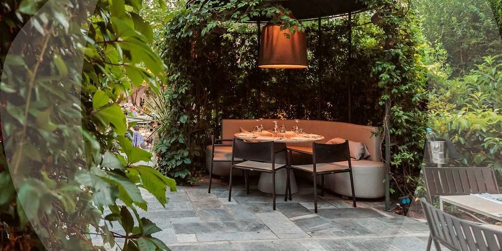 Ανάμεσα σε δάφνες, μυρτιές, σχοίνους, ροδιές, λεβάντες και άλλα αρωματικά φυτά της Ελλάδας, δίπλα στην λίμνη με τα νούφαρα ή κάτω από τον κέδρο του Λιβάνου και τα κυπαρίσσια, τις ελιές και τα πεύκα, απολαμβάνετε ένα εξαιρετικό γεύμα στην Κηφισιά, σε ένα υπέροχο περιβάλλον έχοντας την αίσθηση ο επισκέπτης ότι βρίσκεται στην εξοχή και όχι μέσα στον ιστό της πόλης.