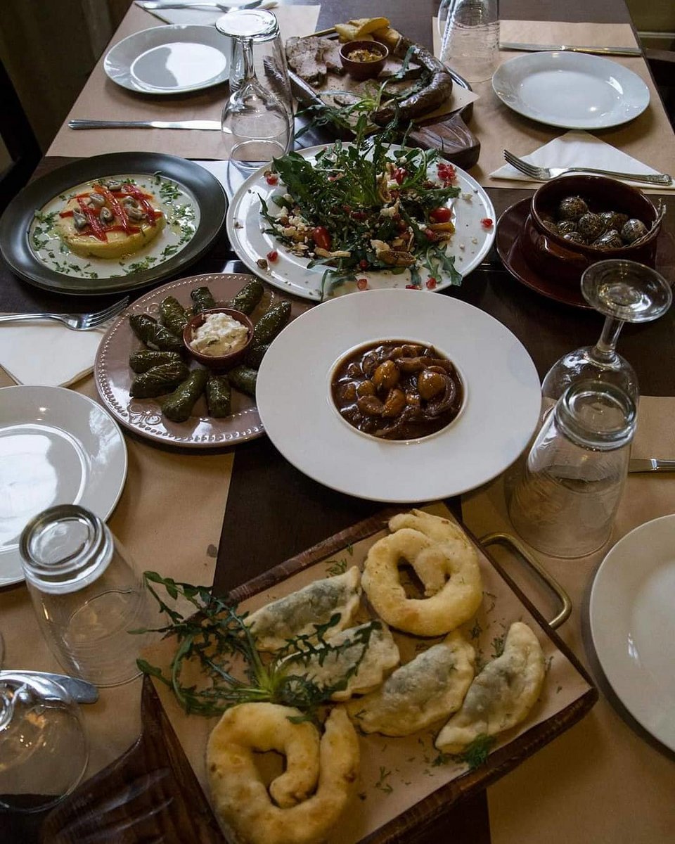 Διαβολόψωμο γνωστό ως εφτάζυμο, στάκα, εμβληματική σαλάτα Κατσούρμπος με ρόδι, σταμναγκάθι, αμύγδαλα, σύκο και μυζήθρα, χοχλιούς μπουρμπουριστούς, σαλιγκάρια στην πιο κλασσική και ατόφια κρητική συνταγή, ντολμαδάκια, σφακιανόπιτα είναι μόνο μια αρχή πιάτων από το μενού.