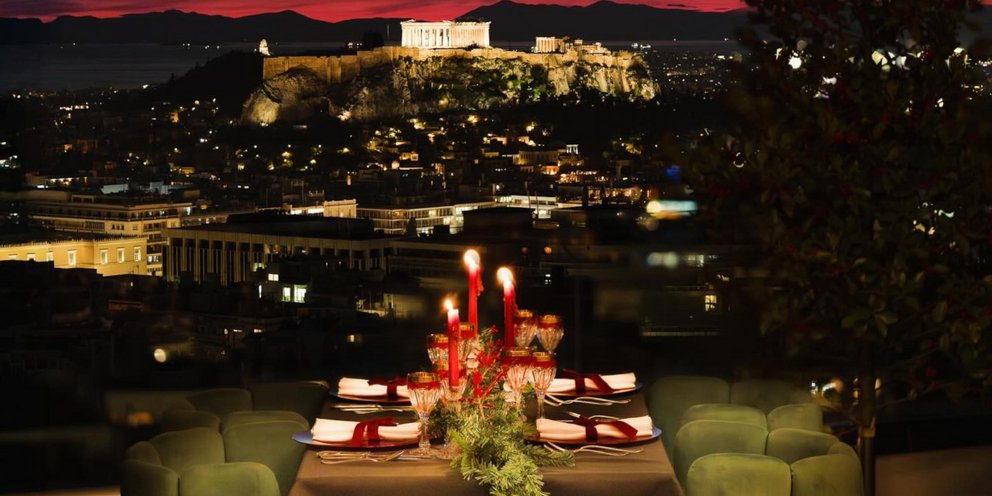 Την Παραμονή της Πρωτοχρονιάς στο roof garden, με θέα όλη την Αθήνα, μπορείτε να απολαύσετε μενού πέντε πιάτων υπό τους ήχους ζωντανής μουσικής αλλά και DJ set. Μεταξύ των πιάτων μπορείτε να γευτείτε σαλάτα με βασιλικό καβούρι, χαβιάρι, πίκλες λαχανικών και πράσινο μήλο, αλλά και αστακό κονφί και καρδιά φιλέτου μοσχαριού US. Η τιμή ανά άτομο είναι στα 650 ευρώ και συμπεριλαμβάνει ένα μπουκάλι κρασί ανά δύο άτομα από τη λίστα επιλεγμένων ετικετών του ξενοδοχείου.