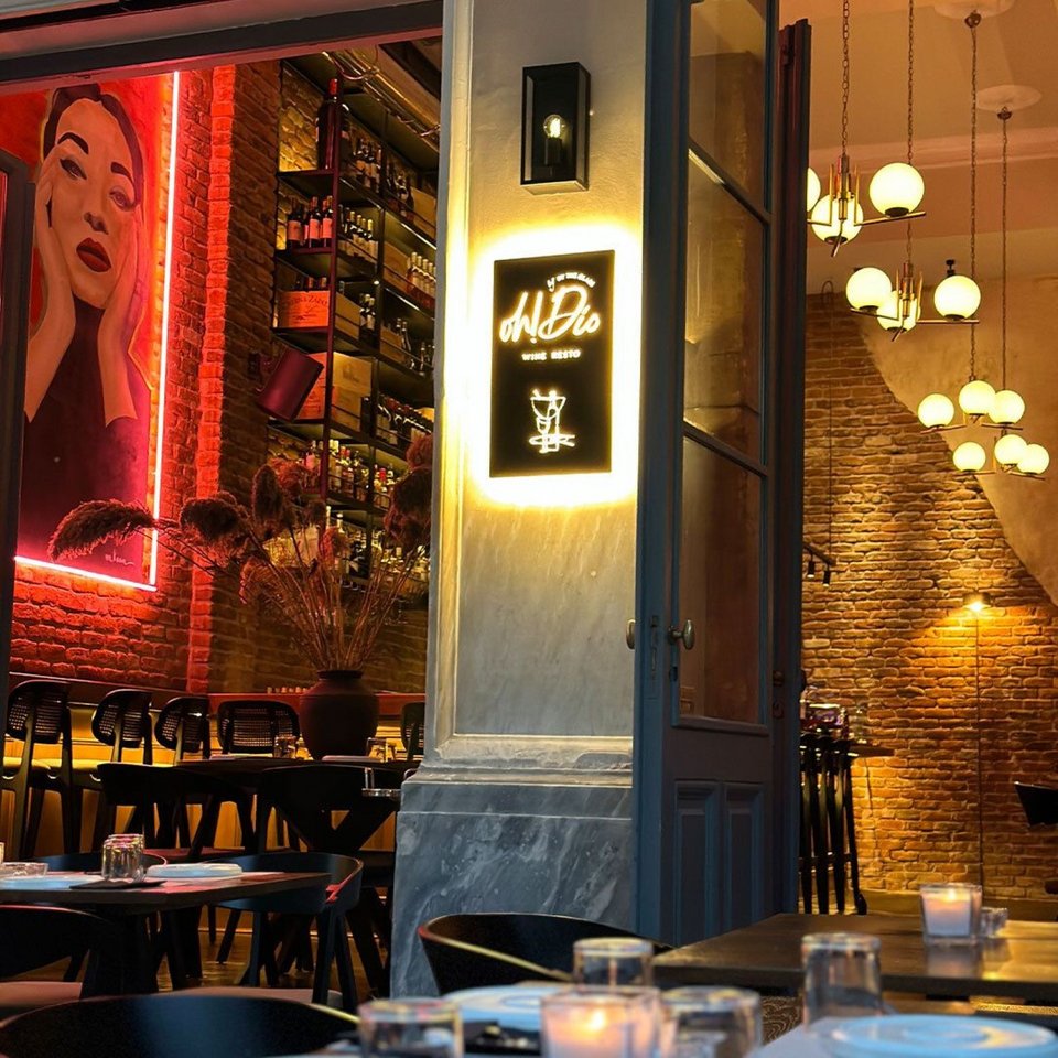 Προσφέρουμε ευρηματική ελληνική κουζίνα και ο στόχος είναι το φαγητό να σε γεμίζει ευχαρίστηση και ζεστασιά. Στο Oh! Dio οι δημιουργικοί συνδυασμοί με κρασί αποτελούν ίσως το σημαντικότερο μέρος της εμπειρίας που φροντίζει να απομακρύνει οποιαδήποτε επιστημοσύνη ή σνομπισμό από την απόλαυση του κρασιού. Σκέψου τα όλα αυτά στον ωραιότερο πεζόδρομο της Αθήνας που από μόνος του φωνάζει «πολιτισμός».