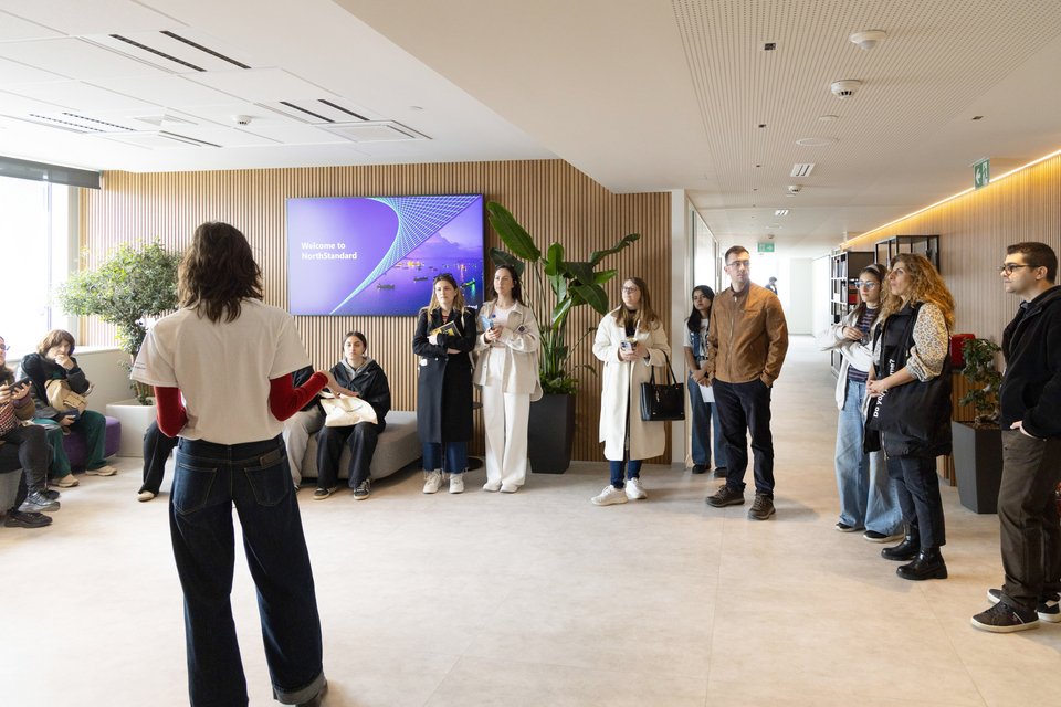 Η ξενάγηση συνεχίστηκε σε επιλεγμένους γραφειακούς χώρους, μεταξύ των οποίων ο 15ος όροφος, όπου στεγάζεται η NorthStandard, ένας από τους κορυφαίους διεθνείς οργανισμούς P&I με παρουσία σε όλα τα μεγάλα ναυτιλιακά κέντρα παγκοσμίως. Οι