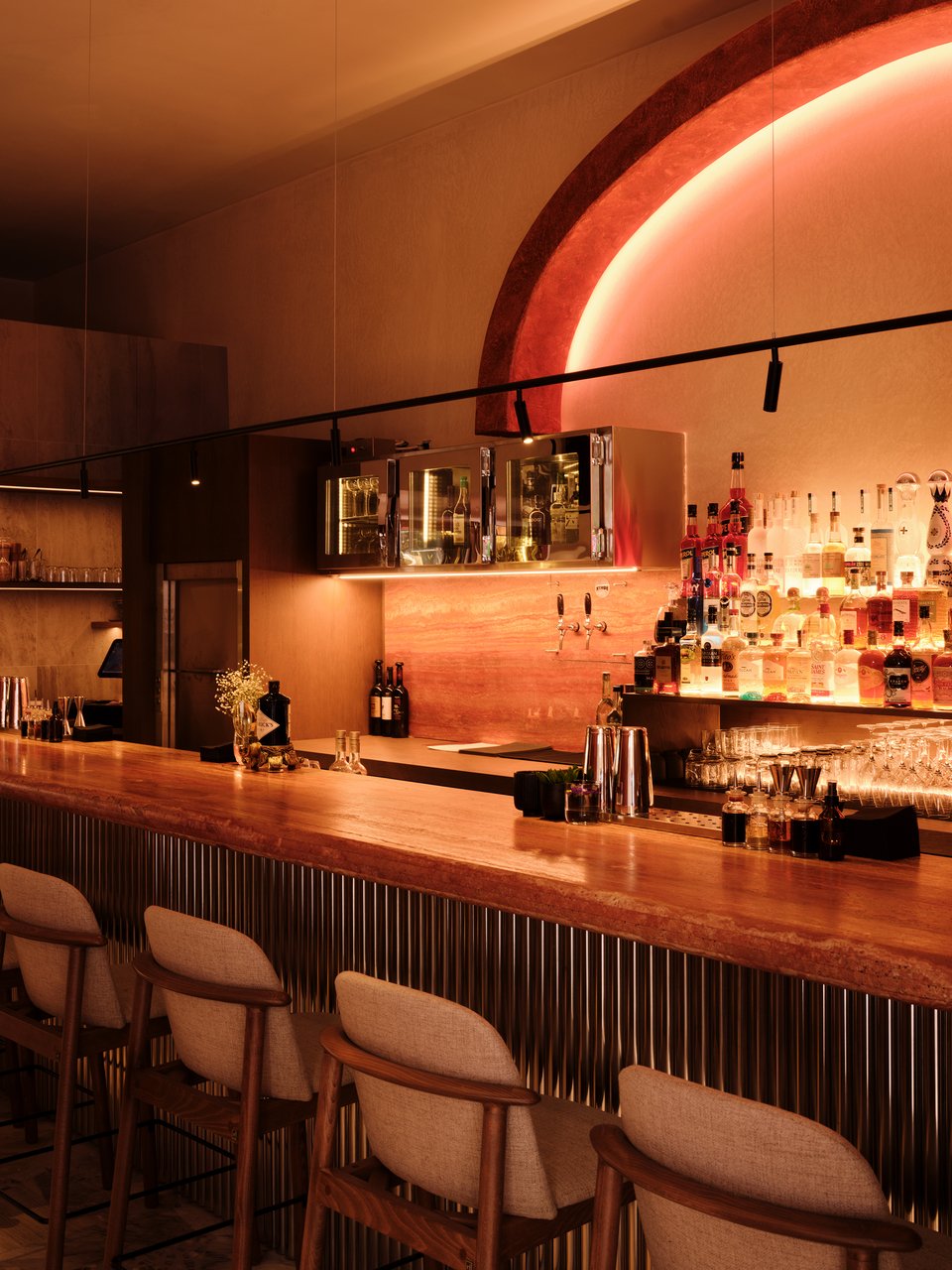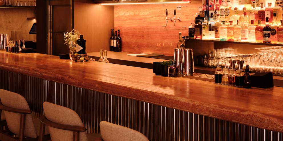 Μια μεγάλη μπάρα σε υποδέχεται σε έναν χώρο με μίνιμαλ αισθητική και cozy ατμόσφαιρα, για να απολαύσεις τα signature cocktails ή ένα ποτήρι κρασί ενώ η open kitchen στον κάτω όροφο φέρνει τον επισκέπτη πιο κοντά στη διαδικασία της δημιουργίας, μετατρέποντας κάθε πιάτο σε μια ξεχωριστή εμπειρία.