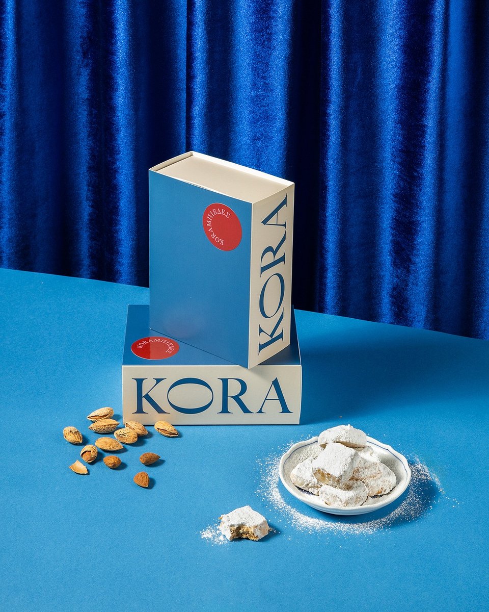 Κουραμπιέδες έχεις φάει πολλούς αλλά έχεις ξαναδοκιμάσει τετράγωνους κουραμπιέδες; Στο Kora Bakery λέγονται... «Koraμπιέδες» και είναι μικρά, ορθογώνια τουβλάκια, τραγανά με φίνο και ντελικάτο βούτυρο Κερκύρας που μοσχοβολάει. Το μυστικό κρύβεται στο σχήμα τους και όχι μόνο.