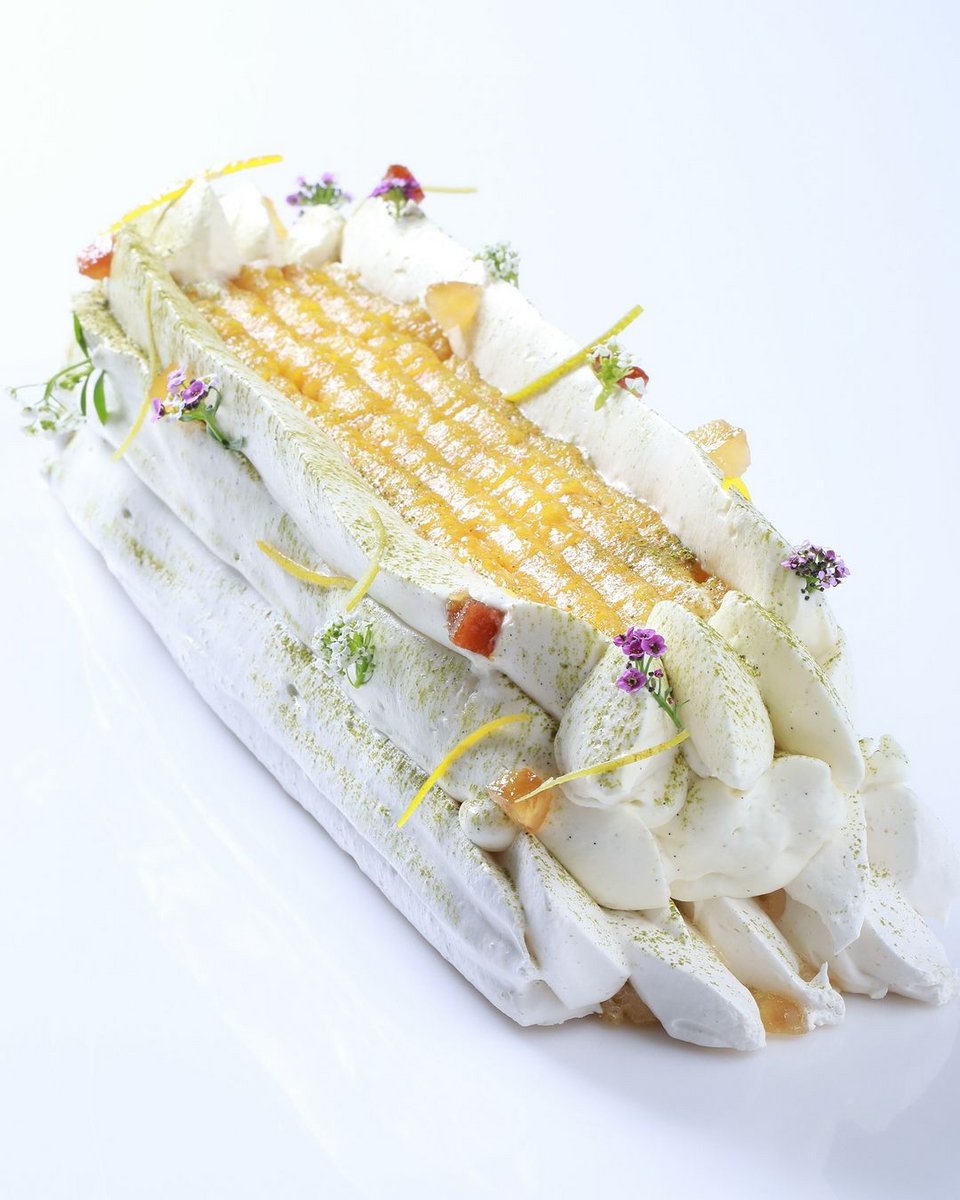 Διαφορετικό και ιδιαίτερο είναι το Crunchy mandarin Bûche de Noël με τραγανή μαρέγκα με μια αέρινη κρέμα από βανίλια Μαδαγασκάρης, κρέμα από μοσχολέμονο και ένα compote από μανταρίνια. Ακόμη, θα βρεις και υπέροχο κορμό Mont Blanc.