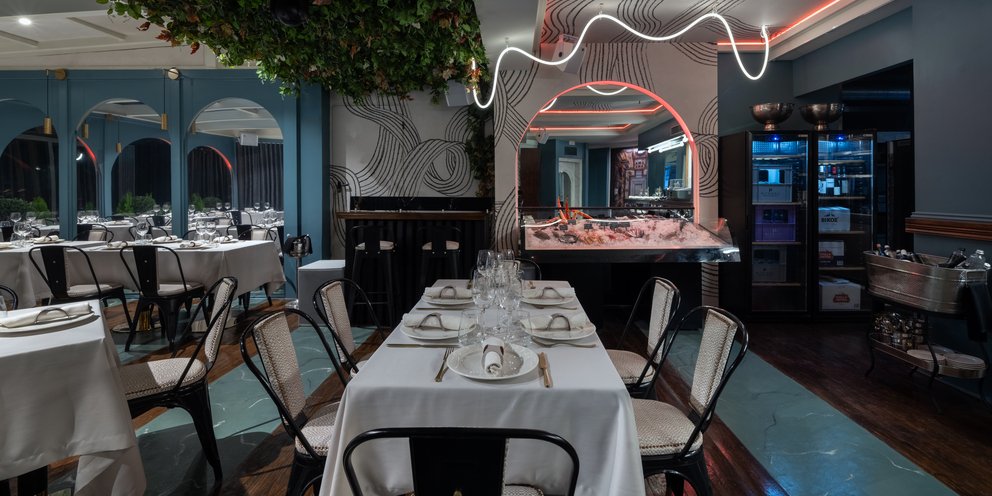 H pop ψαριέρα με τα νέον φώτα και τις γαλάζιες καμάρες
