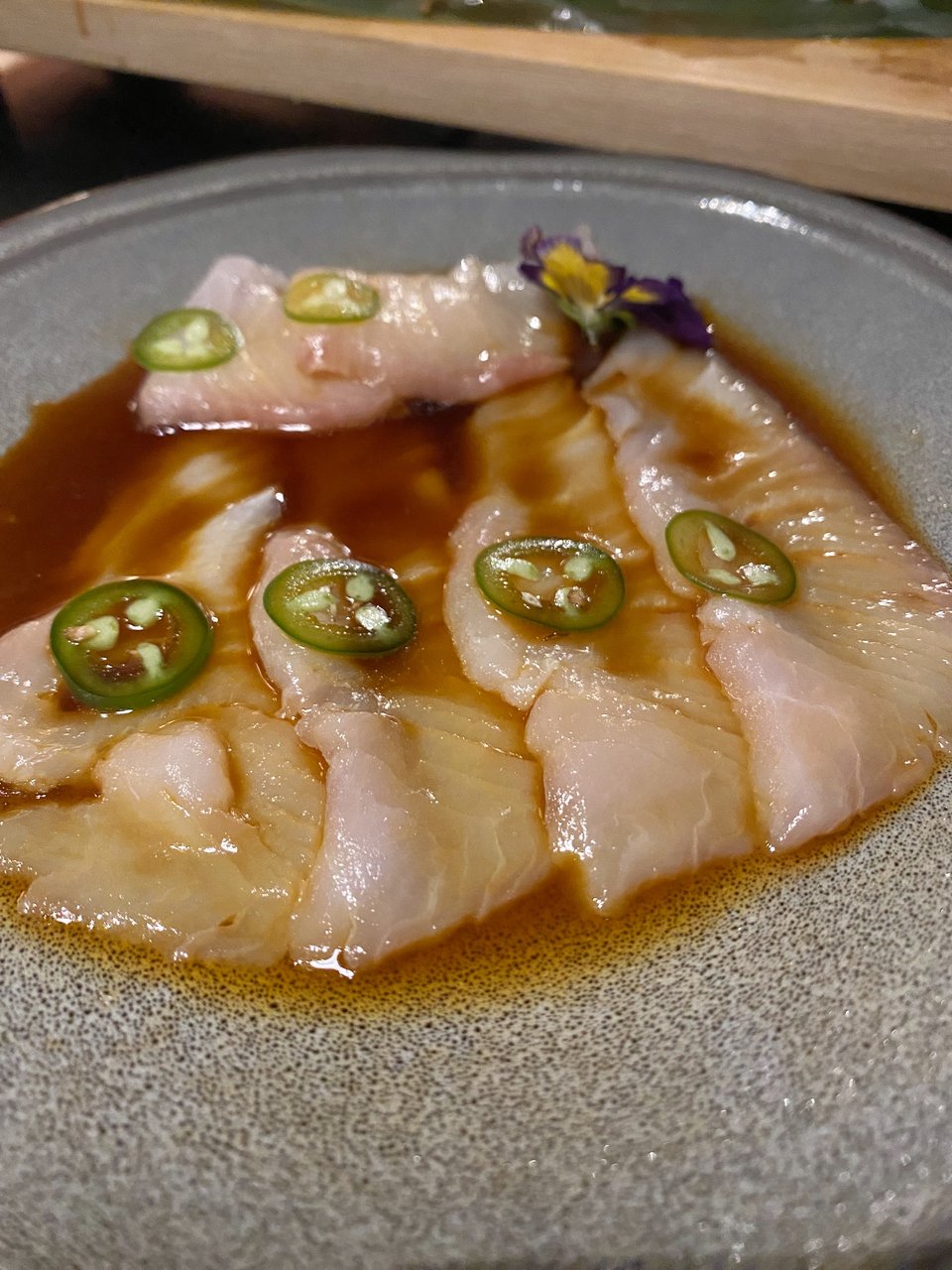 Ξεκινήσαμε με δύο εξαιρετικά κοκτέιλ, με το signature Nami (με sake, λάιμ, κουφοξυλιά, Fresh Blossoms και αφρό από λάιμ και τζίντζερ) και το Midori Ringo (με τζιν Bombay, πουρέ πράσινου μήλου και φύλλα βασιλικού).