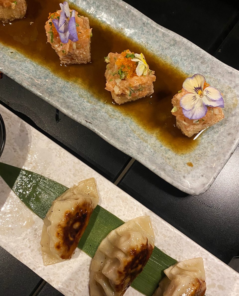 Εμείς εστιάσαμε κυρίως στο sushi και σε κάποια signature ιαπωνικά ορεκτικά, όπως το πολύ γευστικό ταρτάρ σολομού που σερβίρεται σαν νούφαρο μέσα στην καρδιά μιας λίμνης από wasabi dressing.