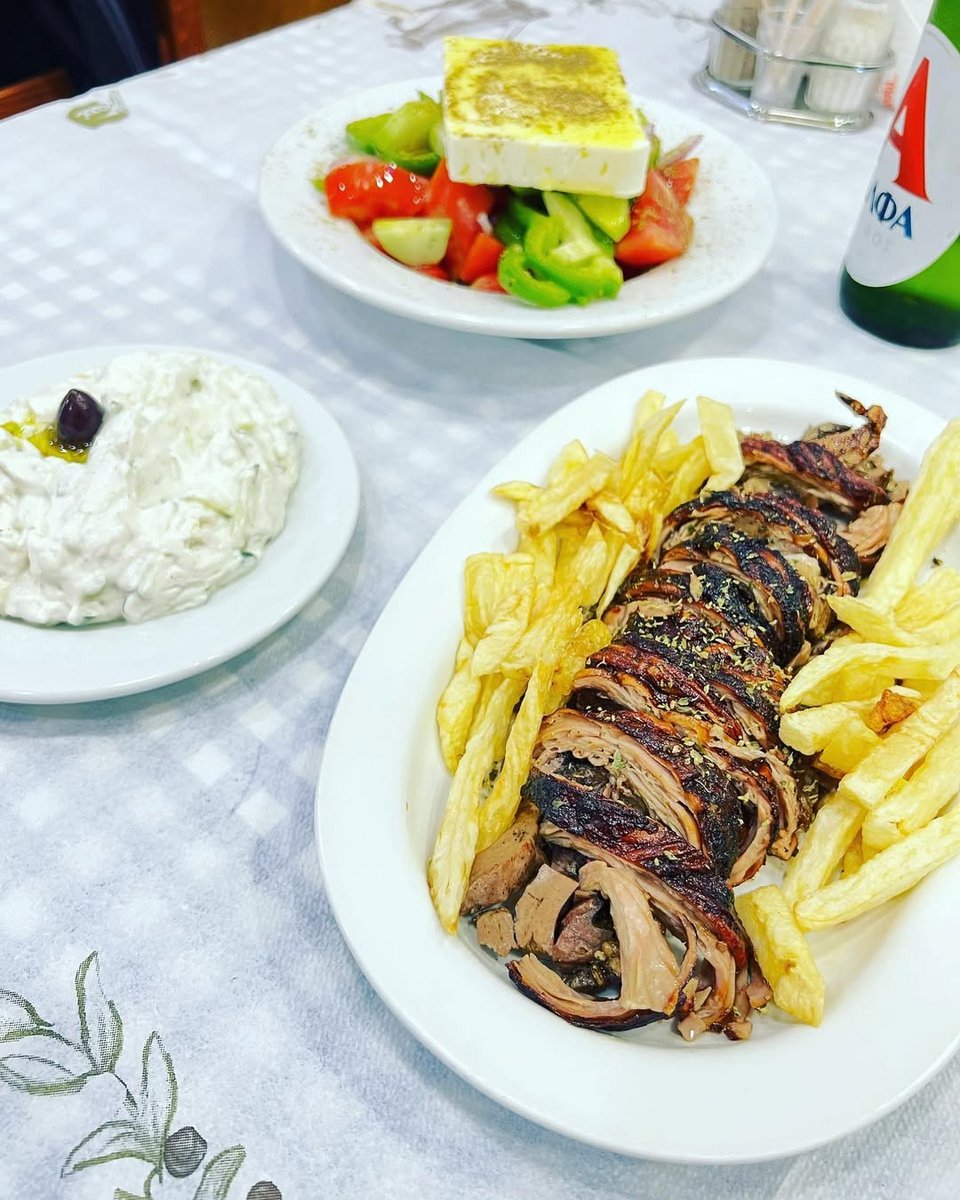 Το κρέας του είναι ζουμερό και συνοδεύεται από αυθεντικές, τηγανητές πατάτες.