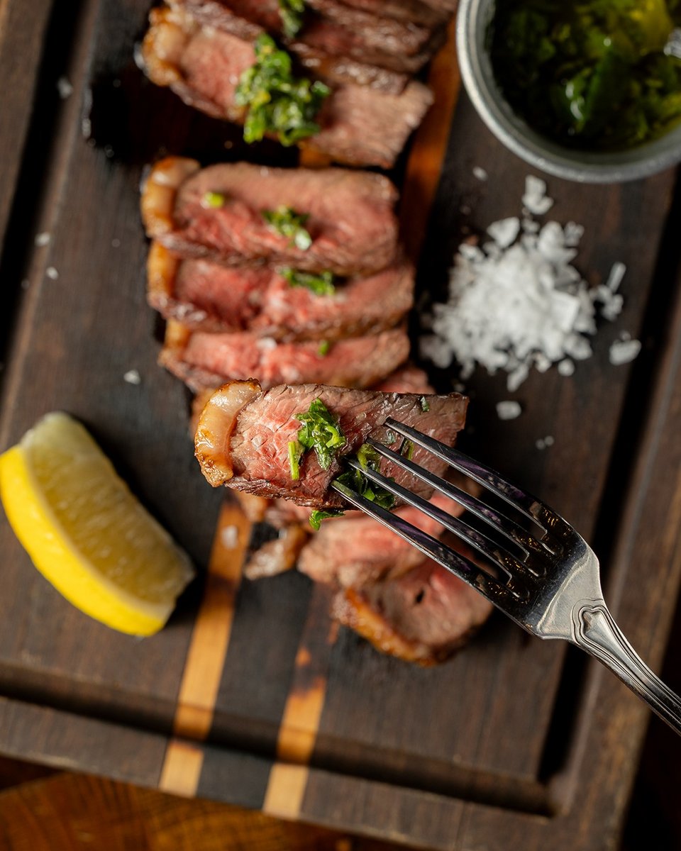 Θα βρεις πρωτότυπες γεύσεις όπως καλαμάκι με μοσχαρίσιο Black Angus αλλά και τυλιχτά με tagliata Black Angus και σάλτσα τρούφας, πικάνια Black Angus, βουβαλίσιο μπιφτέκι από τη Λίμνη Κερκίνης, μπιφτέκι προβατίνας κ.α.