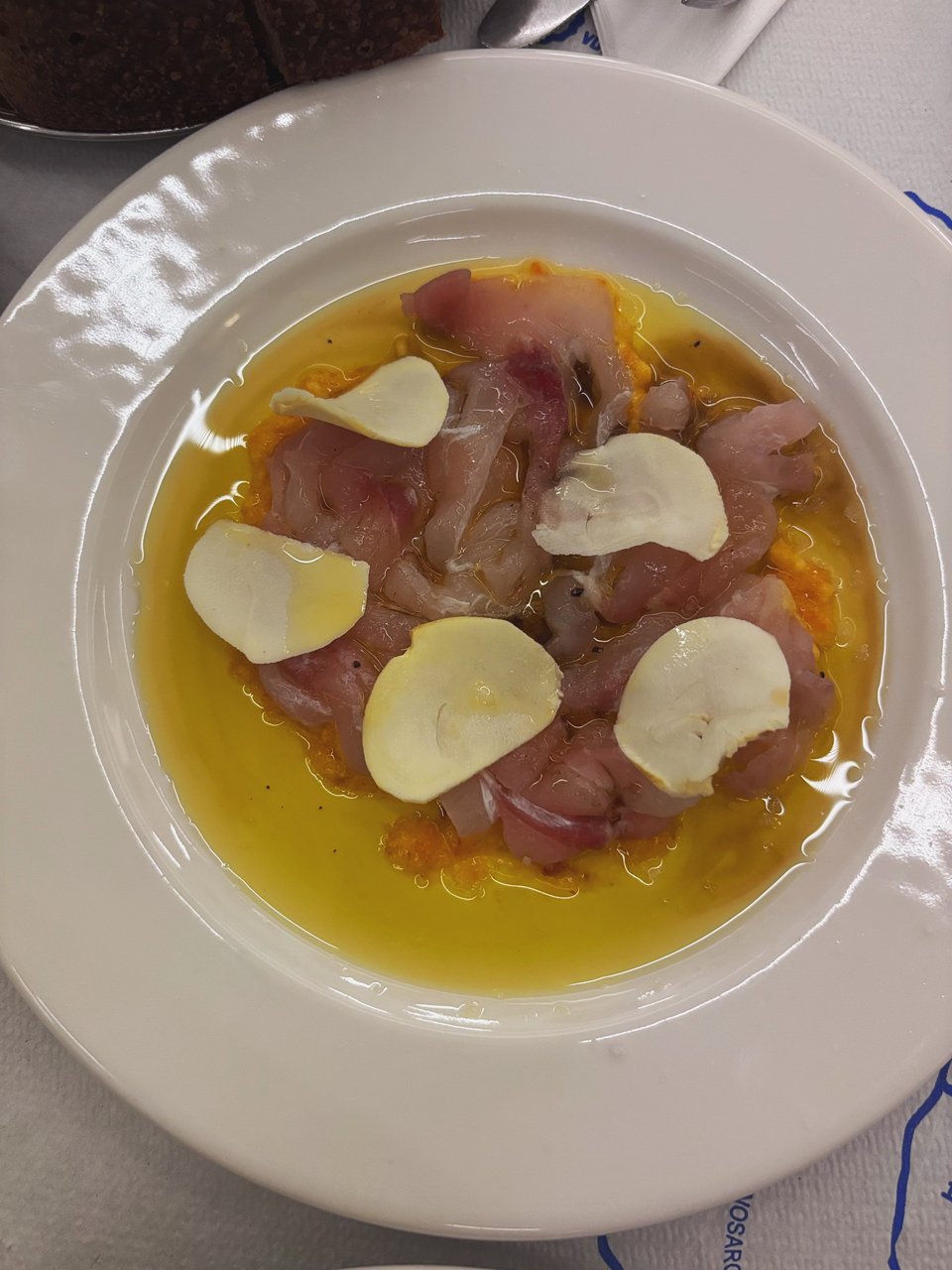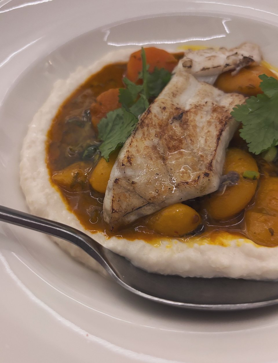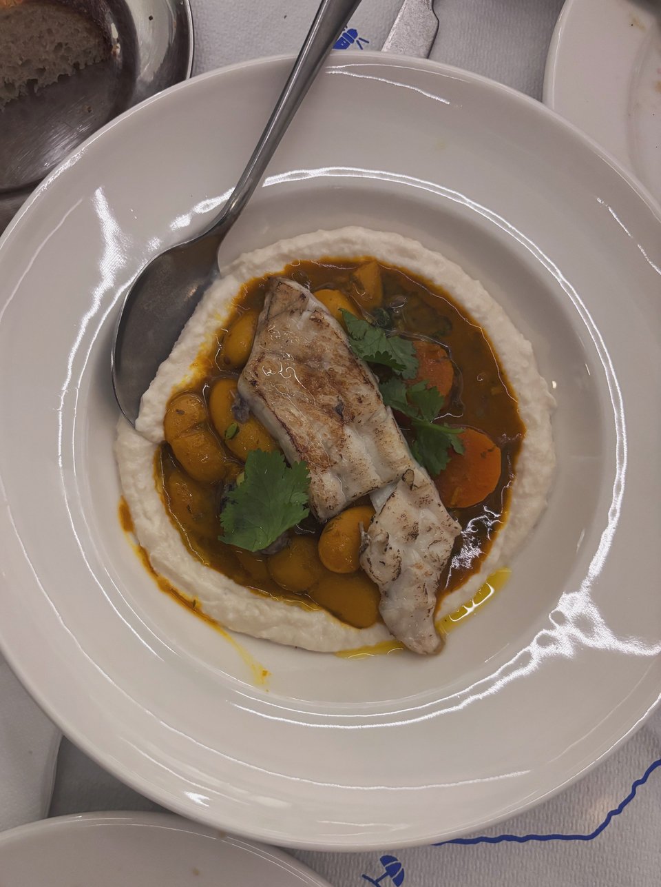 Από όσα δοκίμασα με ενθουσίασε η εκπληκτική φασολάδα με πορτοκάλι. Πρόκειται για φασόλια γίγαντες σε σάλτσα πορτοκαλιού που σερβίρεται πάνω σε έναν υπέροχο γευστικό και ελαφρύ ταραμά, με πελαγίσιο λαβράκι (δεν χρησιμοποιούν καθόλου ψάρια ιχθυοτροφείου, μας είπαν οι ίδιοι).