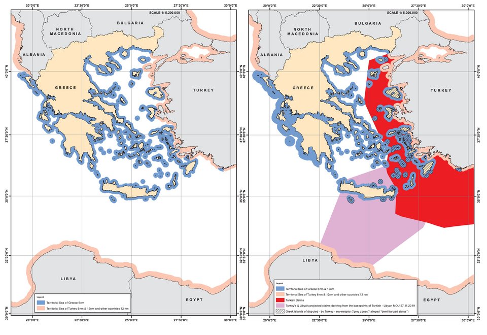 Οι ανωτέρω χάρτες τεκμηριώνουν την έκταση του τουρκικού αναθεωρητισμού με σκοπό την ανατροπή του status quo, παραβιάζοντας το Διεθνές Δίκαιο και το Διεθνές Δίκαιο της Θάλασσας, απειλώντας την ειρήνη, την ασφάλεια και τη σταθερότητα στην περιοχή μας.