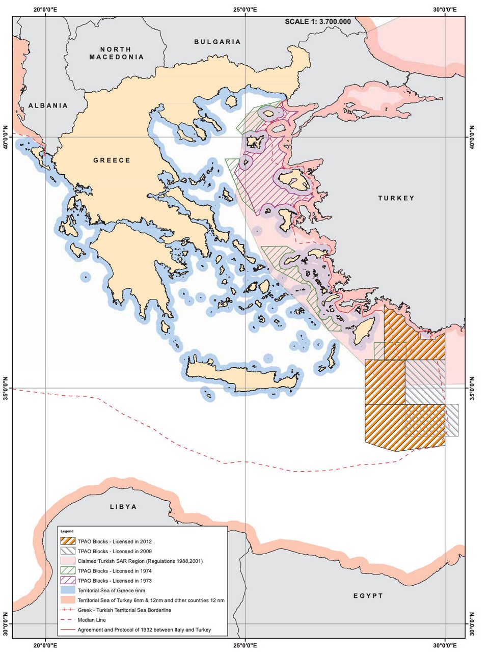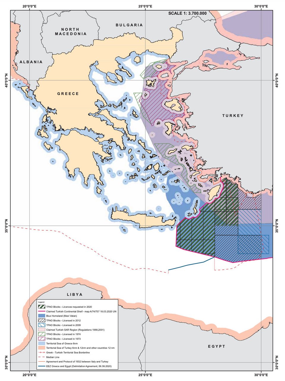 Μέχρι και το 1972, η Τουρκία, πέραν των χωρικών της υδάτων 6 ν.μ. στο Αιγαίο και 12 ν.μ. σε Μεσόγειο και Εύξεινο Πόντο, δεν είχε προχωρήσει σε κάποια μονομερή κίνηση διεκδίκησης σε θαλάσσιες ζώνες. Οι διεκδικήσεις της Τουρκίας έναντι της Ελλάδας ξεκίνησαν τη δεκαετία του '70.
