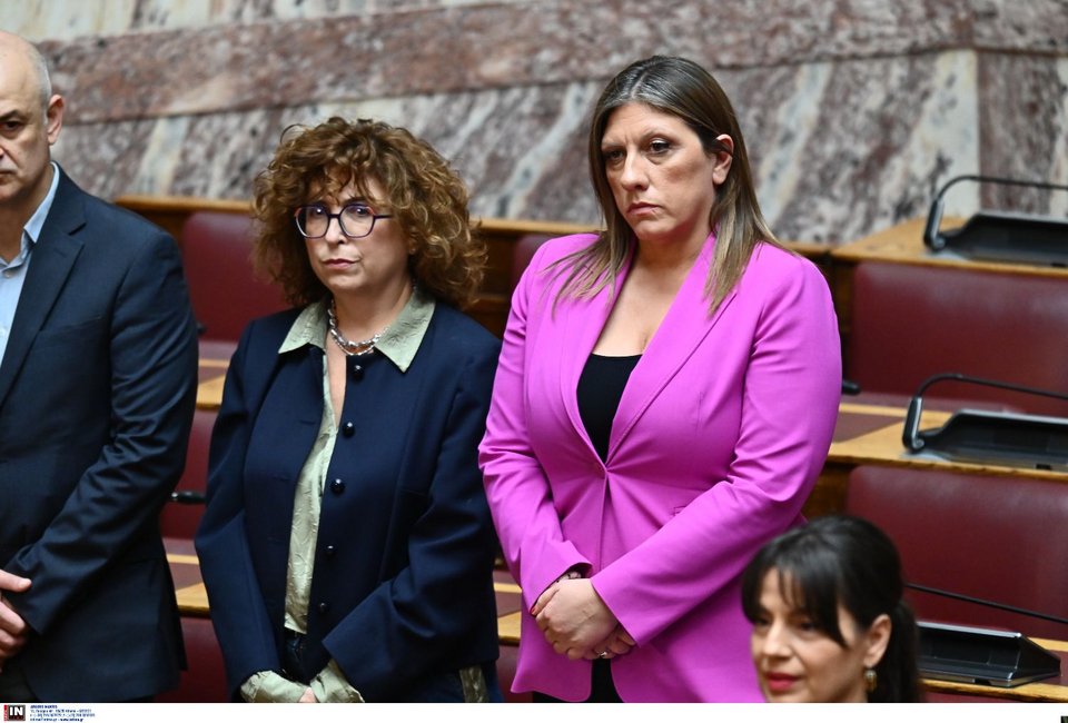 Καλλιόπη Βέττα και Νίνα Κασσιμάτη αποχωρώντας από την αίθουσα της ολομέλειας