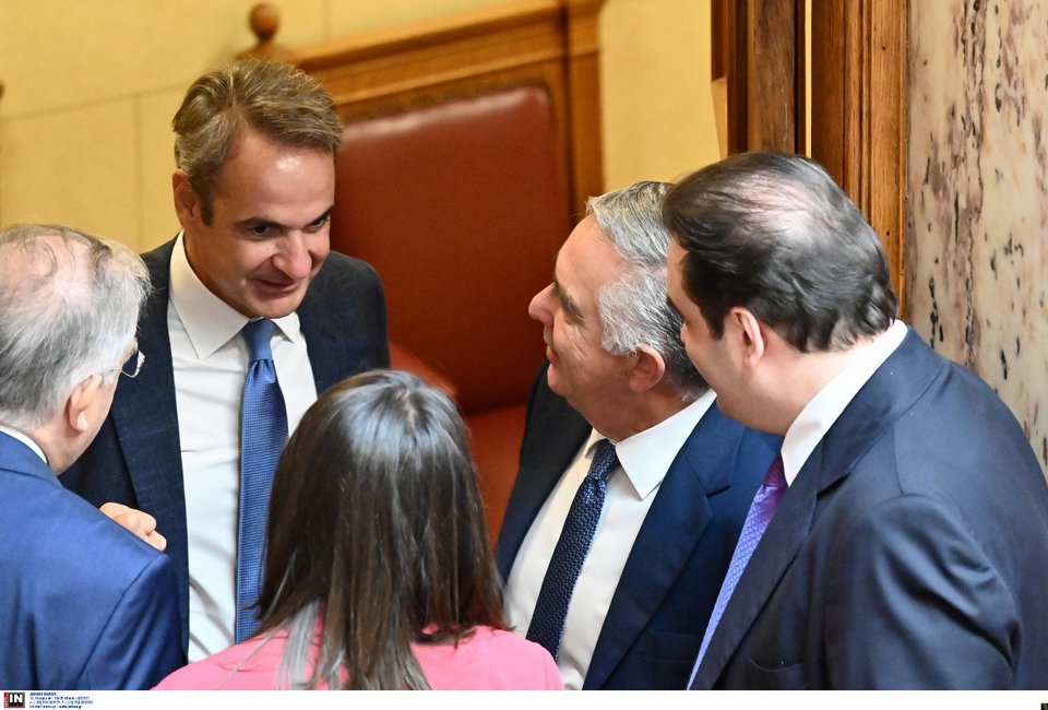 Ο πρωθυπουργός σε χειραψία με βουλευτές της ΝΔ