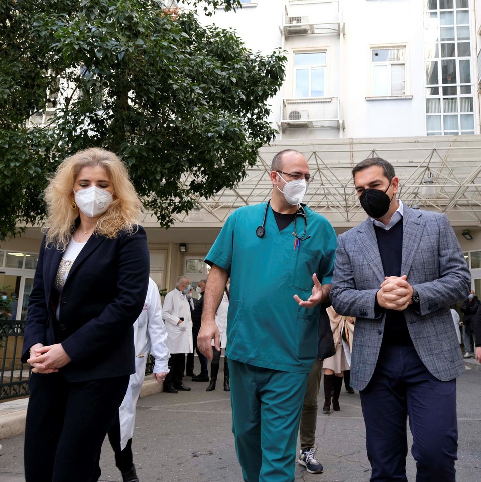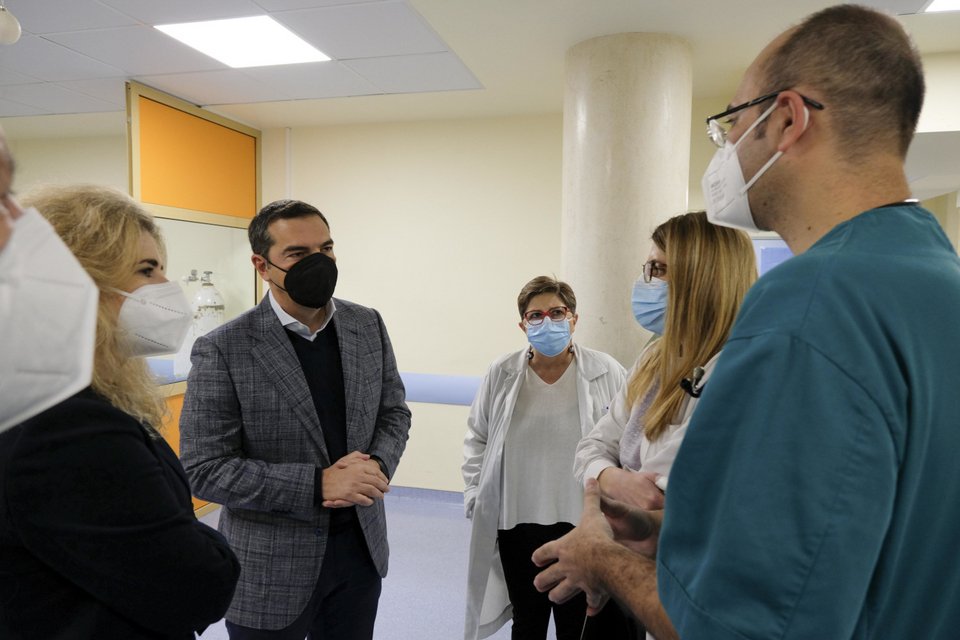 Το νοσοκομείο «Αλεξάνδρα» επισκέφτηκε ο Αλέξης Τσίπρας, καθώς, όπως είπε, θέλησε να βρεθεί στο πλευρό των εργαζομένων που δίνουν τη μάχη στην πρώτη γραμμή κατά της πανδημίας.
