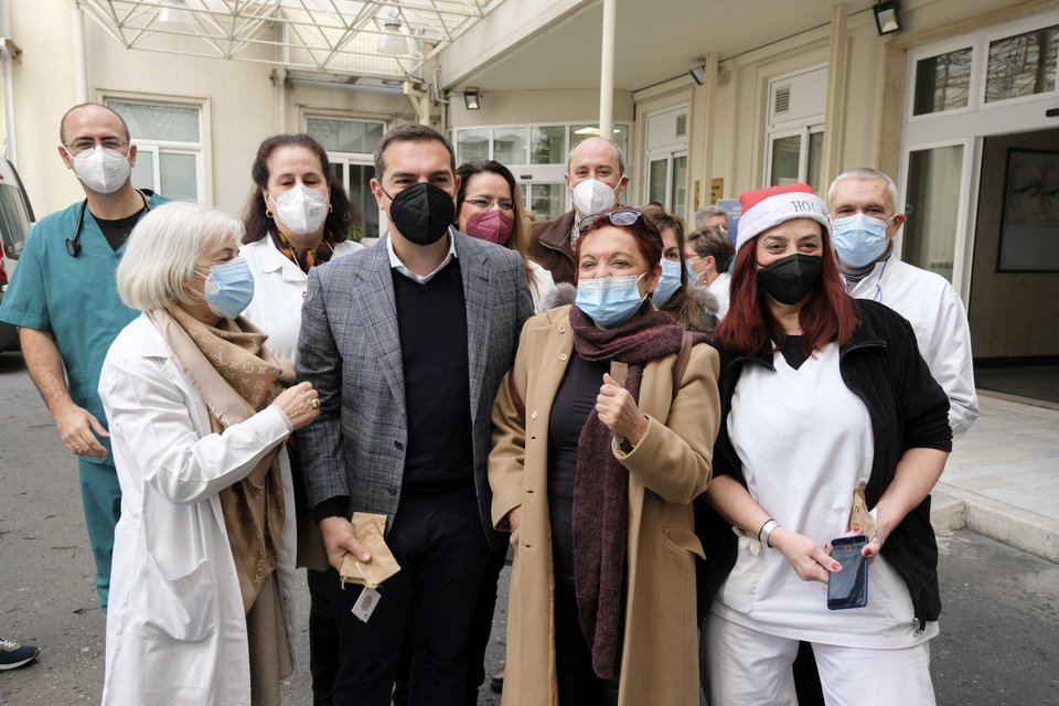 «Καλή δύναμη, καλή χρονιά, να είστε γεροί και να αντέχετε γιατί σας έχουμε ανάγκη», είπε ο πρόεδρος του ΣΥΡΙΖΑ-ΠΣ ανταλλάσσοντας ευχές με το ιατρικό και νοσηλευτικό προσωπικό.