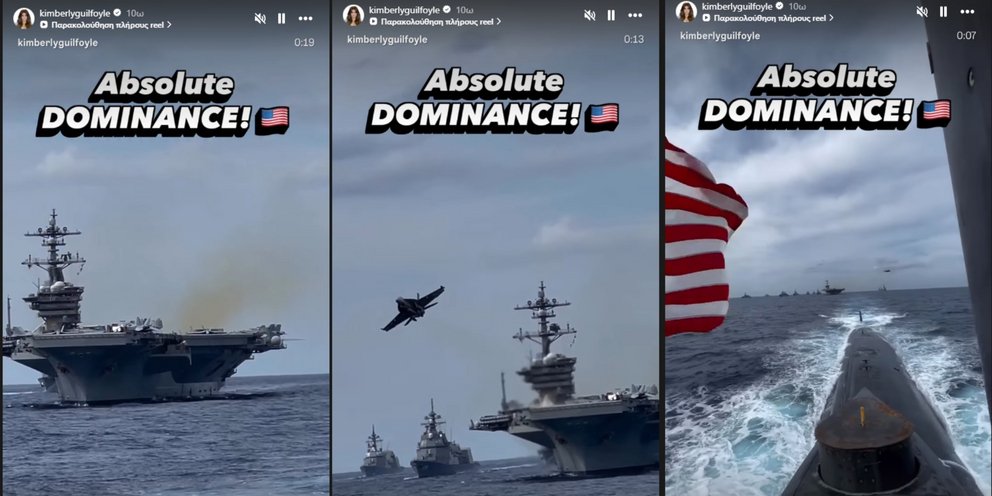 Σύμφωνα λοιπόν με την ανάρτησή της, οι ένοπλες δυνάμεις των ΗΠΑ «κυριαρχούν απόλυτα» στο πεδίο. «Η απόλυτη κυριαρχία» σχολίασε ανεβάζοντας βίντεο από τις αδιάκοπες επιχειρήσεις των αμερικανικών δυνάμεων.