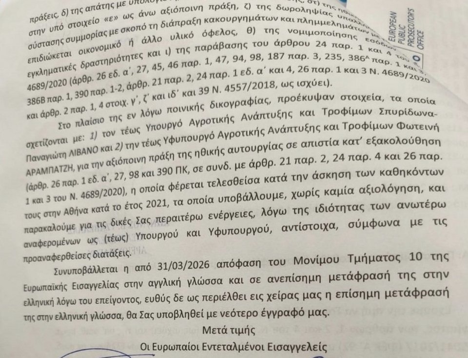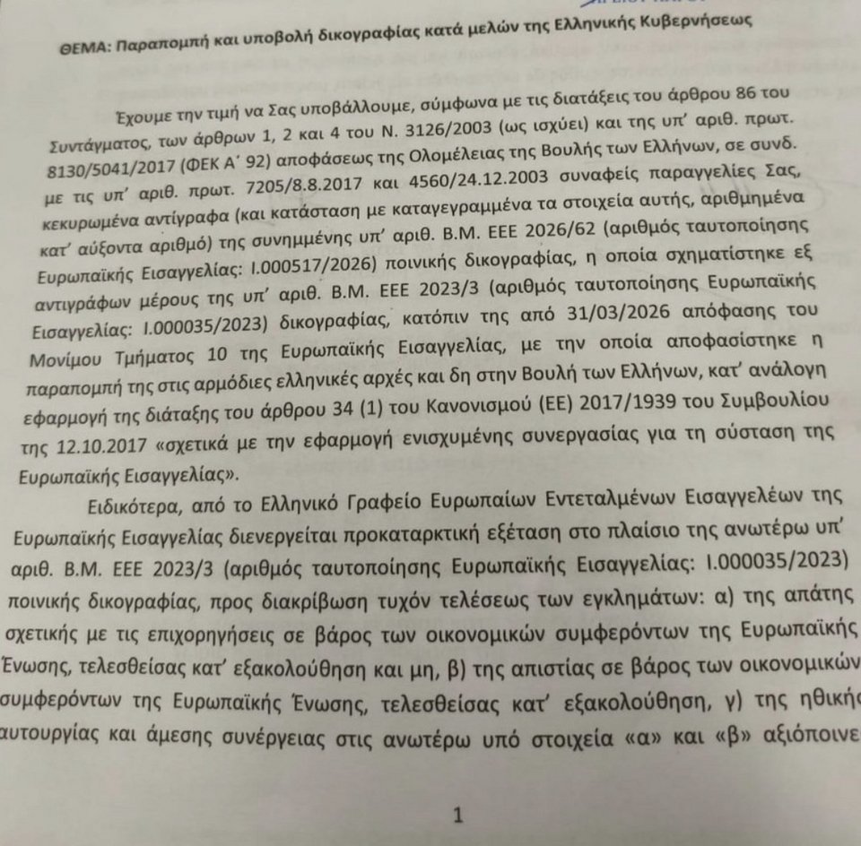 Συγκεκριμένα, απόψε οι «11» αναφερόμενοι βουλευτές θα είναι οι πρώτοι οι οποίοι θα λάβουν αντίγραφο της δικογραφίας της ευρωπαϊκής εισαγγελίας για τον ΟΠΕΚΕΠΕ.